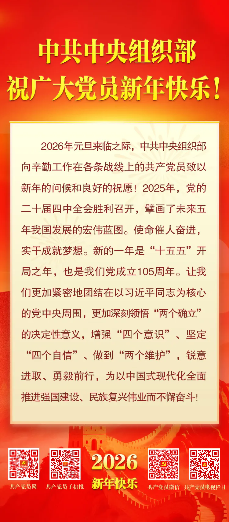 中共中央组织部祝广大党员新年快乐!