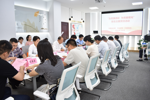 为庆祝中国共产党成立101周年,喜迎党的二十大胜利召开开,持续巩固党史学习教育成果,7月8日,市委组织部与市财政局(市国资委)通过联学共建,开展“为党旗添彩 为党徽增光”主题党日活动。市委组织部部务会成员、二级调研员张雷,市财政局(市国资委)党组成员、副局长(副主任)、机关党委书记马晓峰,市委组织部、市财政局(市国资委)党员代表参加活动。