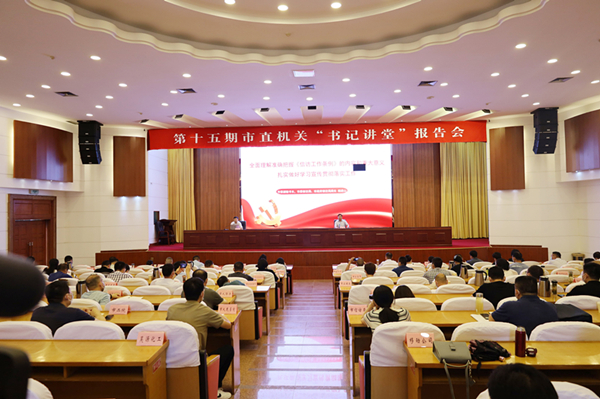 为认真学习贯彻落实《信访工作条例》及全省“一改两为”会议精神,持续推进“我为群众办实事”实践活动,不断将创建学习型机关活动引向纵深,7月26日下午,第十五期市直机关“书记讲堂”报告会在市政府一楼会议室举办,邀请市委副秘书长,市委信访局、市政府信访局局长杨进山作报告。市直工委书记李涛主持报告会。市直及中央、省驻阜直属党组织负责人和党务干部,市直微宣讲团成员,市直工委党员干部等近150人参加。