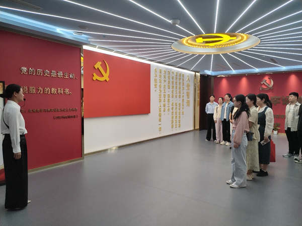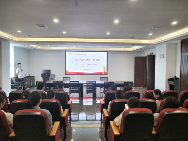 在观影前,阜阳市史志馆讲解员柳迪带领党史爱好者们参观了馆内的党史图片展,向他们介绍了阜阳的历史。